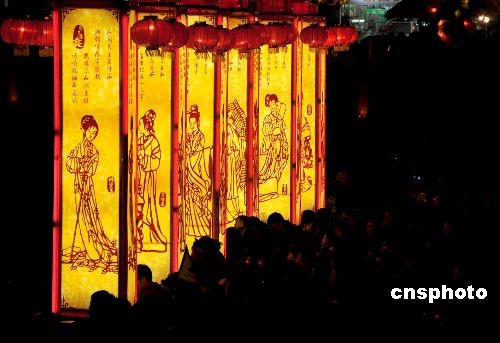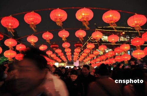 2月7日,元宵佳節臨近,南京夫子廟彩燈景色迷人。當晚,2009南京夫子廟元宵燈會全面試燈,50多組來自全國各地的頂級燈彩全部點亮,將夫子廟及秦淮風光帶裝扮成燈的世界,吸引了數十萬市民和游客觀看。中新社發 胡高華 攝