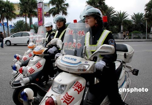 圖為桂林女子交警颯爽英姿上街執(zhí)勤。