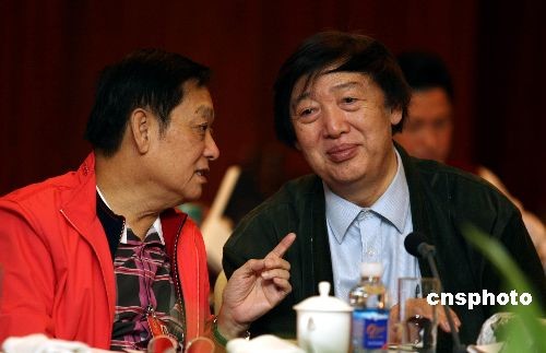 3月4日,全國政協(xié)十一屆二次會議進行小組討論,中國文聯(lián)副主席馮驥才和中國作協(xié)一級美術(shù)師韓美林在文藝小組上交流意見。中新社發(fā) 傅丹丹 攝