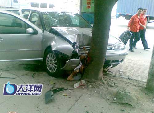 記者在現場看到,肇事車撞上榕樹后才停了下來,挨著榕樹的一輛三輪車和鋼筋護欄被撞出幾米遠。事故中共有5名傷者,其中肇事車上有2名傷者。傷者分別被送往南方醫院、武警醫院和一五七醫院救治。