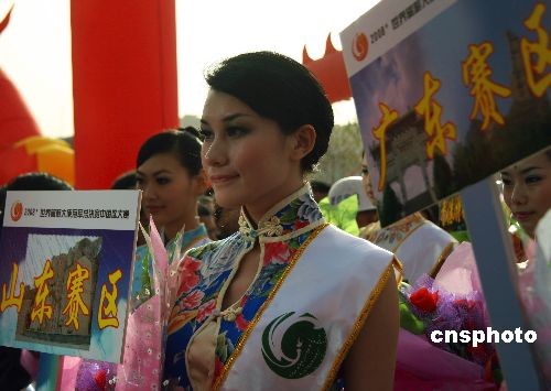 12月1日上午,2008世界旅游大使冠軍總決賽中國區決賽在河北省正定縣開幕,來自全國30個省市和地區分賽區的60名佳麗將在這里角逐中國區大賽冠軍。在北方10攝氏度左右低溫下,選手們以旗袍出場,果然美麗“凍”人。中新社發 翟羽佳 攝