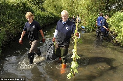 據英國《每日電訊報》6月4日報道,倫敦市長鮑里斯·約翰遜日前在視察一個環保項目時不慎跌入河中,所幸迅速被身旁的人們營救上岸。