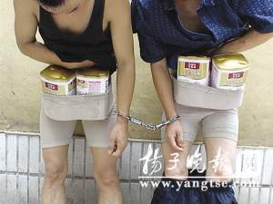 14日下午3點半左右,兩名男子在南京建寧路一家超市里偷了4聽奶粉藏在內褲里準備偷運出超市。在超市門口被保安發現后,兩人四處逃竄,其中一人跑到奶粉貨架處,脫了褲子就把奶粉放回貨架上,但還是被保安和熱心的市民抓住。令人啼笑皆非的是,偷奶粉的兩名男子竟然各穿了三條女性緊身內褲方便作案。