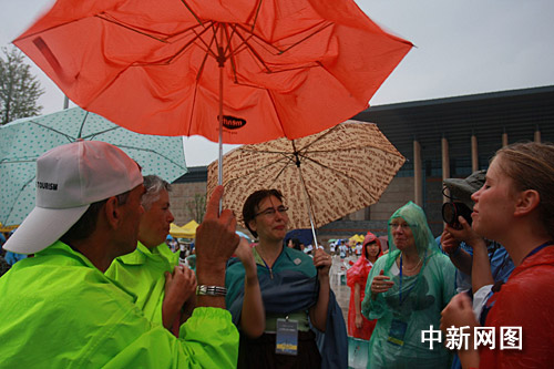 記者在嘉興七一廣場發現,由于下起了大雨,大多數觀測者躲到了雨棚中避雨。許多天文愛好者趁機彼此進行交流。也有部分執著的天文愛好者堅持等在雨中,期待奇跡出現。他們用雨傘護住了機器設備,自己卻冒雨等候在最佳位置。