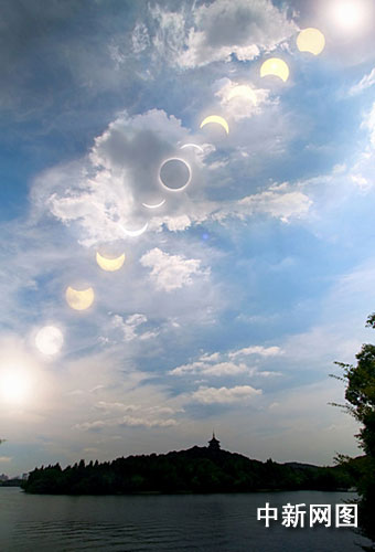 日全食在杭州西湖上空留下妙幻魅影。作者 張兆嶺 馮揚
