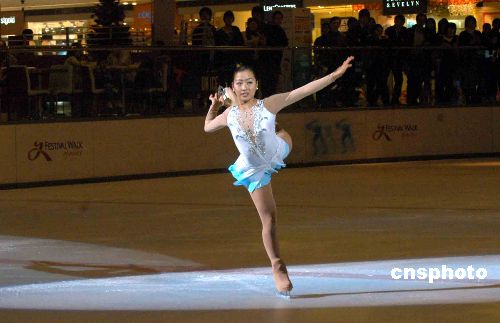 香港花樣滑冰代表隊運動員小野珠實在授旗儀式后作表演。