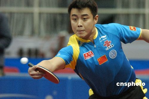 二月二十六日,第四十九屆世界乒乓球錦標賽男子團體賽在廣州進行第三輪角逐,中國隊的王勵勤、馬琳、王皓組成豪華陣容,以三比零完勝對手克羅地亞隊,取得小組賽三連勝。中新社發 柯小軍 攝