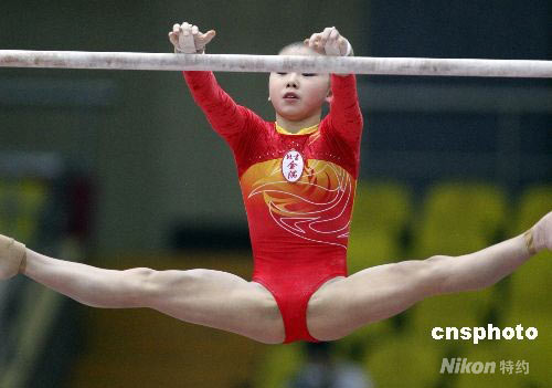 5月10日,2008全國體操錦標賽暨奧運選拔賽在天津體育中心進入最后一個比賽日的爭奪,何可欣奪得高低杠金牌。 中新社發(fā) 杜洋 攝