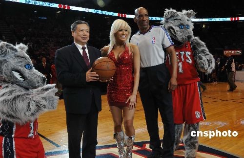 當地時間3月8日晚,美國大紐約地區“2009中華之夜”晚會在NBA新澤西網隊主場舉行,在NBA賽場吹出一陣“中國風”,眾多美國球迷在觀看球賽之余,也飽覽了一場中華文化盛宴。圖為中國駐紐約總領事彭克玉在演出現場。中新社發 魏晞 攝