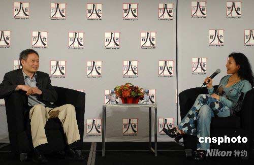 美國華裔精英組織“百人會”第十七屆年會四月十八日繼續在貝弗利山莊希爾頓酒店舉行。當天最受矚目的單元是好萊塢著名華裔影星陳沖以主持人的身份與著名華裔導演李安對話,李安向現場四百多位華裔精英和社會名流介紹了自己從影的心路歷程。中新社發 張煒 攝