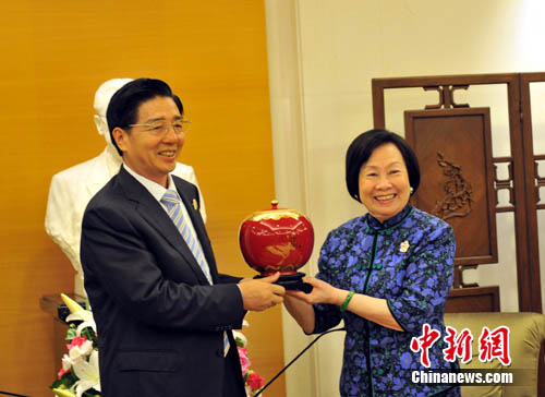 中新網(wǎng)臺(tái)北7月1日電 (記者 蔣雪林 黃少華)已故海基會(huì)董事長(zhǎng)辜振甫遺孀辜嚴(yán)倬云1日在會(huì)見到訪的廣西書記郭聲琨時(shí)說,兩岸簽署ECFA,將使兩岸的前途非常光明。