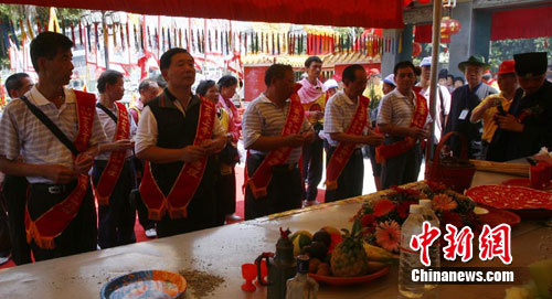 中新網漳州7月3日電(劉永明)臺灣彰化受天宮玄武上帝信眾一行80多人,3日來到福建漳州塔后武當宮進香朝拜。這是繼第二屆海峽論壇的開漳圣王文化、關帝文化交流活動之后,兩地信眾再次展開的一次較大規模信俗文化交流。