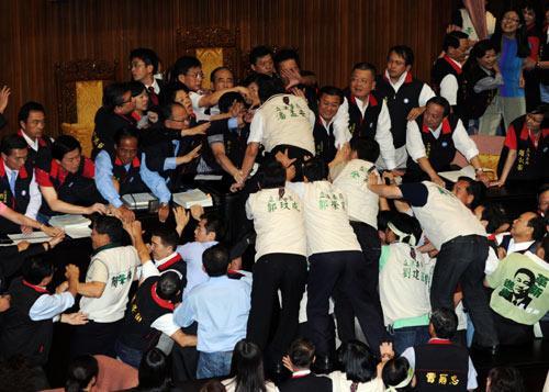 中新網7月11日電 綜合消息,臺灣“立法院”臨時會8日審議ECFA(兩岸經濟合作框架協議),由于民進黨暴力阻撓表決,現場爆發肢體沖突,國民黨“立委”吳育升被砸傷眼角,民進黨“立委”郭玟成攀爬主席臺時摔落。據臺灣《聯合報》報道,民進黨“立院”黨團總召柯建銘、新任干事長管碧玲,昨到高雄市立民生醫院探視受傷“立委”郭玟成,院方表示,郭有三根肋骨骨折。