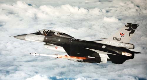 中新網8月5日電 據臺灣《聯合報》報道,臺灣空軍花蓮基地兩架F16戰機日前演習射擊魚叉飛彈。