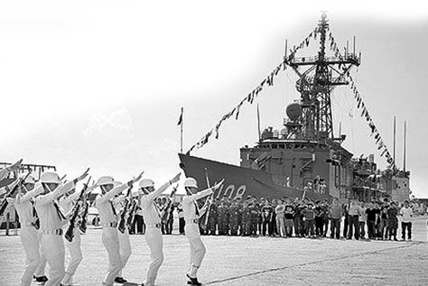 臺軍中年頭最久的傳統莫過于“海龍王大典”。據臺媒報道,臺海軍的敦睦遠航支隊每年要穿越赤道一次,所有艦艇一字排開,橫著穿過赤道。同時艦艇上的汽笛拉響一分鐘,艦尾則噴水柱以示慶祝。除值班官兵外,所有人都要到甲板集合,舉行 “海龍王大典”。儀式由支隊長或艦長主持,他們帶頭焚香禱告并獻上牲果祭拜,祈求上天保佑航行平安。接著,甲板上會出現由海軍官校學生扮演的“海龍王” 和“蝦兵蟹將”。他們身穿龍王服、手持龍王杖、頭戴龍王面具,煞有介事地“出巡”,隨后向全艦官兵宣讀“圣旨”,同意艦艇通過赤道線。“海龍王”還會頒發“過赤道證書”,由艦長恭敬接過。