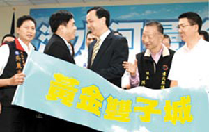 中新網(wǎng)9月6日電 據(jù)臺灣《中國時報(bào)》報(bào)道,臺北市長郝龍斌與國民黨新北市長參選人朱立倫5日大陣仗召開記者會,公布“黃金雙子城--淡水河曼哈頓計(jì)劃”廣告片,這是在臺北市“花風(fēng)暴”之后,郝、朱兩人首度同臺為選情造勢。郝、朱拿著“黃金雙子城、團(tuán)結(jié)一定成”的布條,表達(dá)未來仍將持續(xù)推動雙城合作的決心。