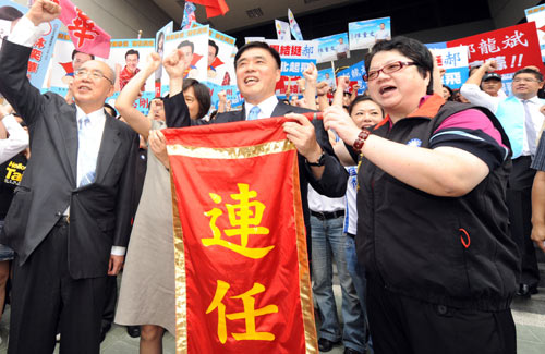 郝龍斌致詞時,先向在場人士深深一鞠躬。他說,在風風雨雨、紛紛擾擾的時刻,還有這么多人支持他,令他感動。最近許多市民都請他“一定要挺住”,讓他更加深爭取連任的決心。為了臺北市民的福祉、臺灣未來的走向,一定全力以赴。郝龍斌多次高呼“一定要贏、一定會贏”,現場歡呼聲四起。