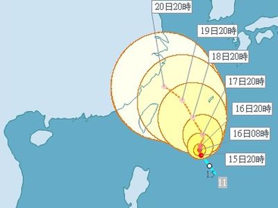 中新網9月16日電 綜合臺灣媒體報道,今年第11號輕度臺風凡那比15日晚形成,臺灣“中央氣象局”表示,周日(19日)到隔天,將是凡那比最接近臺灣的時候,不排除臺風侵臺,提醒民眾特別留意臺風消息。
