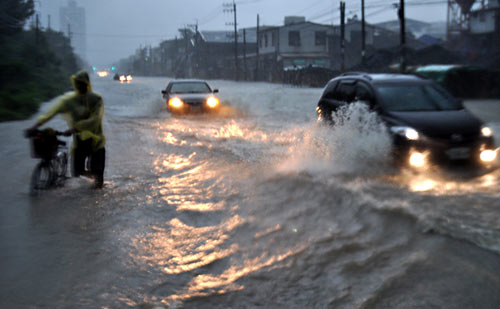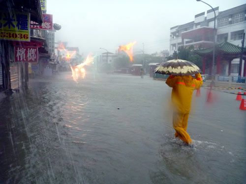 臺(tái)灣“氣象局”指出,“凡那比”中心點(diǎn)離開臺(tái)灣本島后,高雄縣市和屏東地區(qū)降雨以每小時(shí)超過100毫米速度增加,“氣象局”19日晚7時(shí)將高雄山區(qū)與屏東山區(qū)總降雨量再上修至1200毫米及1400毫米。