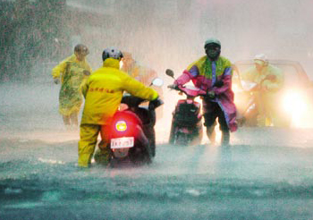 大高雄平地地區19日上午除了風勢稍強外,雨量不大,許多民眾還笑稱“賺到一天臺風假”;沒想到下午風云變色,下午2時起,突然降下每小時超過100毫米的超大豪雨,高雄市三民、左營、楠梓區及高縣仁武、大社、橋頭、美濃等鄉鎮都遭遇暴雨襲擊。