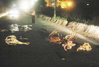 中新網9月27日電 據臺灣《聯合報》報道,臺灣云林縣北港鎮防汛道路25日晚驚見牛骨、牛頭、牛尸遍地,附近居民被腥味熏到難以入眠,路過的駕駛員被尸體嚇到,以為是棄嬰,險些釀成車禍。