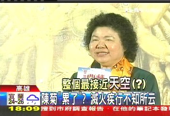 報(bào)道稱,盡管被批得滿頭包,陳菊還是照跑行程,29日下午和高雄縣長楊秋興同臺時(shí),不但顯露疲態(tài),還有點(diǎn)語無倫次。道歉、勘災(zāi)、還得跑行程,陳菊只能用焦頭爛額來形容。