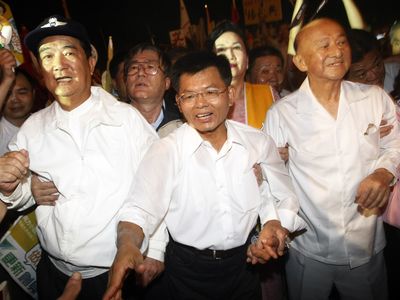 中新網10月19日電 據臺灣“今日新聞網”報道,近日高雄市選情“棄!迸c“反棄!痹掝}不斷,國民黨候選人黃昭順18日重炮抨擊高雄縣長楊秋興,才是“9•19”災難的“人禍之首”。楊秋興當日晚間受邀出席華人企業領袖高峰會,對于未來是否考慮與藍營合作則表示,沒有合作問題、沒有棄保問題,要爭第一。