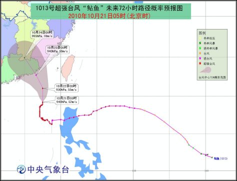 中新網10月21日電 據“中央社”報道,臺灣“氣象局”表示,超強臺風“梅姬”(大陸稱“鲇魚”)于今日凌晨2時進入東沙島南南東海面,持續朝北前進,威脅東沙島、巴士海峽及臺灣海峽海面,2時30分正式發布海上臺風警報。