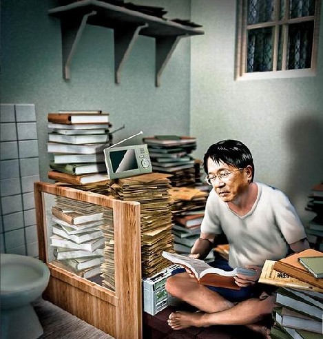 陳水扁在“代序”說,清洗廁所時(shí),他會(huì)想到卷入“水門案”、講真話卻入獄服刑七個(gè)月的美國前總統(tǒng)尼克松的白宮幕僚長寇爾遜,因?yàn)榭軤栠d的父親曾教誨他:“無論你做什么,就是清掃廁所也無所謂,都要做得出類拔萃。”例如去年六月十日,臺(tái)當(dāng)局“總統(tǒng)府”前資政彭明敏赴臺(tái)北看守所探視時(shí),他就正在洗廁所。