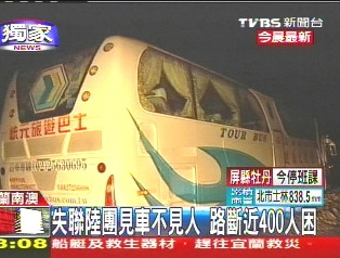 報道說,游覽車玻璃上還貼著歡迎貴賓的簡體字紙條,但車上的司機和旅客卻不知去向。工程人員表示:“只有車,受困在坍方的地方!庇浾邌枺骸叭擞性谏厦鎲?”工程人員回答:“我不曉得,我沒有上去耶。”