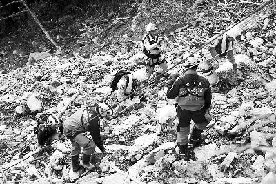 他們突破幾處坍方路段后,向前推進了一個小時路程,才碰到受困人員。這些大陸游客和民眾已受困半天,多半饑寒交迫,官兵隨即卸下口糧給他們充饑,之后繼續向前尋找。