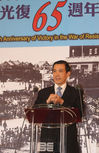 馬英九25日上午出席“紀念抗日戰爭勝利暨臺灣光復65周年特展”開幕式。紀念特展是由“臺灣省府”、臺北市府共同舉辦,于臺北中山堂光復廳展出歷史文獻資料。馬英九、臺當局“行政院長”吳敦義等受邀出席。