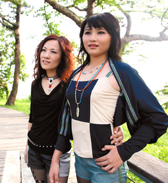 黃夏凡將太魯閣族婦女最愛的披肩袖套,由白色改成淺墨綠色,布邊車縫原住民的圖騰,長短褲也融合了原住民自然純真的藝術(shù)色彩。