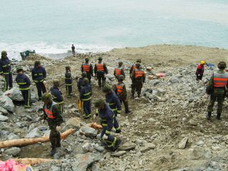 宜蘭縣消防局長徐金山指出,持續(xù)動員人力進行海陸空搜救,一日動員的人力高達1402人,還出動4艘軍艦、7架直升機、7艘巡邏艇,陸上的搜救范圍鎖定蘇花公路112.8公里到116公里的三個土石沖積扇,軍艦及巡防艇則是在臺灣東北角海域進行海上搜尋。