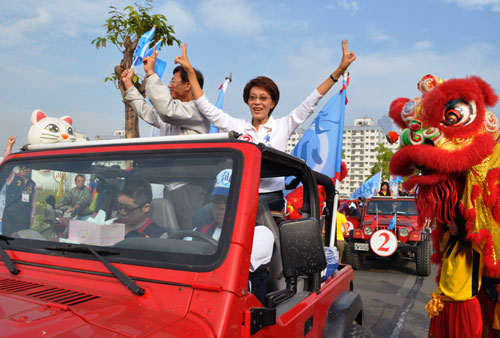 中新網(wǎng)11月12日電 據(jù)臺灣“中廣新聞”報道,臺灣“五都”選舉開跑第一天,國民黨高雄市長候選人黃昭順12日早8點就帶著競選團隊上香祈福,隨后展開車隊游行掃街拜票。針對龍?zhí)顿彽匕概袥Q陳水扁有罪定讞,黃昭順說這讓大家對司法重拾信心,并稱高雄都的選舉一定會“棄保”,而且是棄貪腐,保清廉,棄蕭條,保經(jīng)濟。