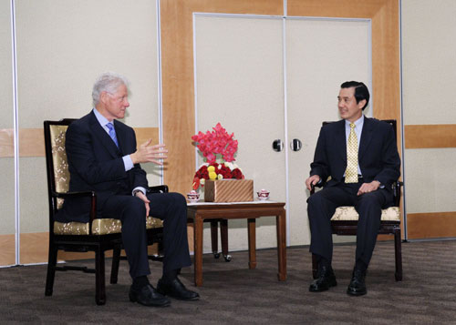 中新網11月15日電 據臺灣《聯合報》報道,即使是第六次到臺灣,美國前總統克林頓人氣未減,不少臺灣企業名人粉絲爭相目睹,即使握手合照價碼高達25萬元(新臺幣,下同),依舊熱賣。據報道,一位上海富太太專程飛來,只為了要跟偶像克林頓合照,也花了25萬。