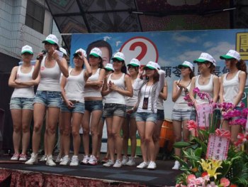 國民黨方面,臺中市長候選人胡志強競選總部成立志工會,來自臺北的美女雙胞胎正妹率先加入。高雄市長參選人黃昭順則出動“正妹”女兒現身力挺,現場多位女性“立委”現身力挺。