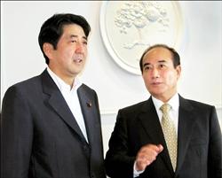 王金平(右)十六日應(yīng)邀在日本演講,在演講會(huì)前與安倍晉三(左)會(huì)晤