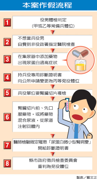 “役政署”三年前也查出有40名役男以氣胸名義申請改判體位,“中國醫藥大學”有11人、中山醫藥大學有8人,他們均為醫學系學生;竟自己用針筒朝胸腔扎針注射空氣,造成“氣胸”現象以求免役。
