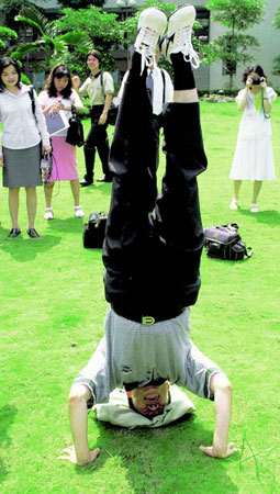 謝長廷“漏網鏡頭”:臉涂迷彩 大玩倒立(組圖)(2)