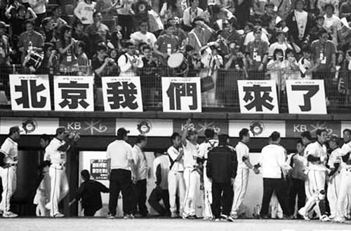 由于王建民、陳金鋒和潘威倫等島內(nèi)棒球好手都因故缺席,所以之前臺灣老百姓并不看好這場比賽。但沒想到,年輕新秀現(xiàn)場表現(xiàn)極佳,順利完成了一項“不可能的任務”。在勝負已定的那一刻,現(xiàn)場的球迷迫不及待地打出的巨幅標語“北京,我們來了!”而無數(shù)現(xiàn)場、電視機前的民眾感動落淚!