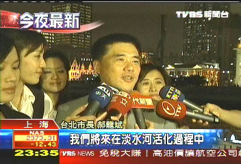 當(dāng)晚外灘鐘聲敲過8點15分,臺北市長郝龍斌暌違上海3年,再度登船游黃浦江。報道說,端出臺灣荔枝招待,上海市安排的游船,連戰(zhàn)夫婦、宋楚瑜夫婦都坐過,為了郝龍斌一行人安全游江,還派出巡邏艇來回護(hù)航。郝龍斌聽著導(dǎo)游介紹外灘的萬國建筑,想的是怎么把外灘移植到臺北的藍(lán)色公路。
