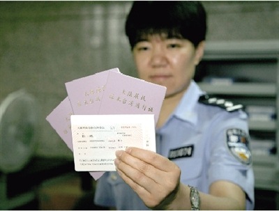 昨天上午10時,北京市公安局出入境管理處民警展示《大陸居民往來臺灣通行證》。據出入境管理處負責人介紹,當天下午,所有參加首發團的北京旅行社都將領到證件。 本報記者盧國強 通訊員趙宏宇 攝影報道