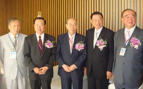 海基會董事長江丙坤(右二)與海協(xié)會副會長王在希(左二)七日出席第十三屆中國現(xiàn)代化學(xué)術(shù)研討會。中為“促進(jìn)中國現(xiàn)代化學(xué)術(shù)基金會”董事長梅可望。 (“中央社”圖)