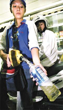 中新網(wǎng)10月31日電 臺灣島內(nèi)油價周五漲價,確定會漲到歷史新高,引發(fā)用油族的“囤油效應”,不少人最近紛紛帶著瓶子上加油站,摩托車油箱加滿后再“加滿瓶”帶回家,高油價意外點燃“汽油炸彈滿街跑”的安全疑慮。