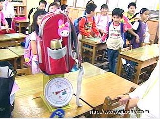 小女生提起書包好沉重,里頭到底裝了些什么呀?學校課本7、8本加上安親班作業,教室里每個小朋友的書包平均都超過5公斤,放不下才藝班課本,只還裝在另一個手提袋里,三十多公斤的孩子,等于每天背著六分之一重的自己上學去。