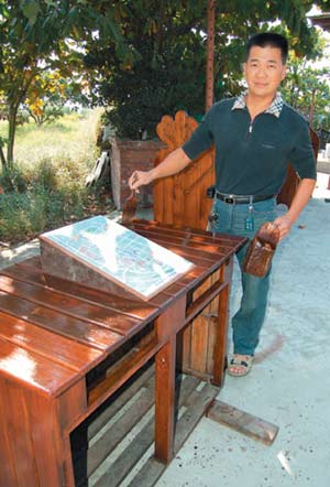 郭水發(fā)考上清潔隊(duì)后,剛好鹿港鎮(zhèn)長(zhǎng)王惠美有意推動(dòng)回收舊家具再利用工作,喜歡動(dòng)手動(dòng)腦的他與隊(duì)員們重新裁切舊家具、再加工,做出了叫好叫座的板凳、信箱等,變成鹿港公所推廣的“伴手禮”,鹿港游客中心買得到。