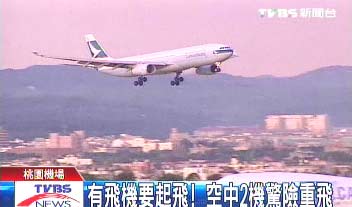 中新網(wǎng)3月1日電 據(jù)臺(tái)灣TVBS報(bào)道,臺(tái)北桃園機(jī)場(chǎng)去年6月才因跑道上有飛機(jī)要起飛,塔臺(tái)緊急通知正要降落的飛機(jī)重飛,驚險(xiǎn)事件在8個(gè)多月后又重演。27日,桃園機(jī)場(chǎng)跑道,一架飛機(jī)機(jī)頭超過跑道停止線,顯示正要起飛,塔臺(tái)緊急通知空中2架正要降落的飛機(jī)重飛,但其中國(guó)泰飛機(jī)機(jī)師因?yàn)槁牪欢形模恢l(fā)生什么事,最后塔臺(tái)又再度溝通,才及時(shí)重飛,有驚無險(xiǎn)。