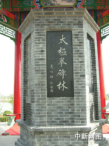 據介紹,整個太極文化碑廊東西長一百一十五米,鑲嵌一百四十多塊碑刻。碑廊東要兩端及中間各建一碑亭,吳伯雄先生題寫的“太極拳碑林”及劉炳南先生題寫的“太極文化化碑苑”分別放置在中間碑亭的正南、正北位置。