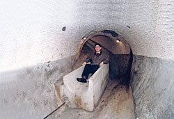 兩條密道皆為二點三米寬,二點一米高,造型有如螺旋式走道,一路向下盤旋,若不小心可能就會摔個大跤,寬度可容納二至三人同時并行。最特殊的是,西側(cè)的密道旁,還設(shè)計成約一人寬,以磨石子為底,類似溜滑梯的滑行道。飯店說法是,這種設(shè)計便于讓行動不便的人員使用。由于滑道兩端距離約七十米,又是一路往下盤旋,看過的飯店人員戲稱,這大概是世界最長的“水泥溜滑梯”。